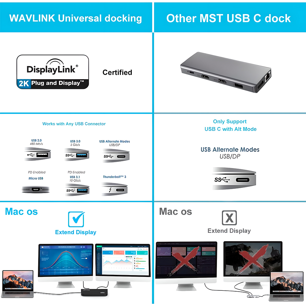 Wavlink Docking Station USB Dual Monitores Mac Windows