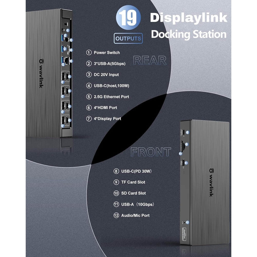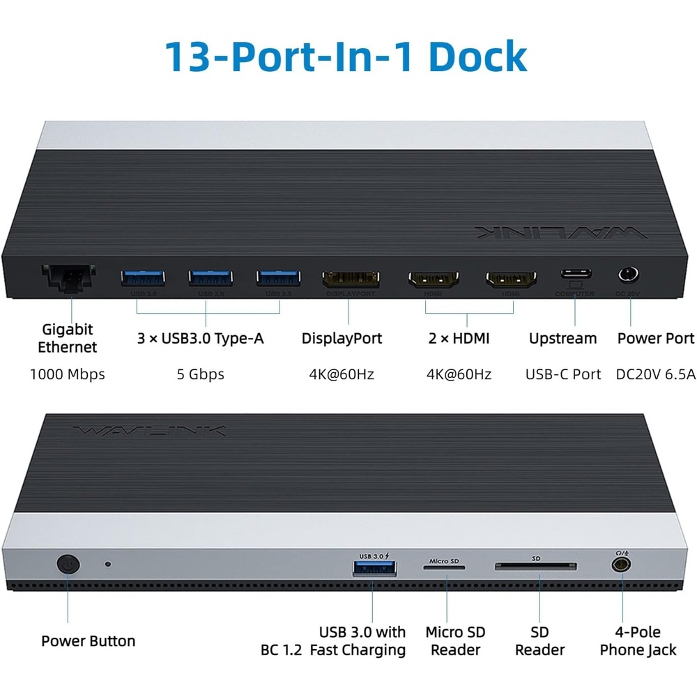 Wavlink Dock Dual 4K 5K USB C A DisplayPort HDMI Ethernet