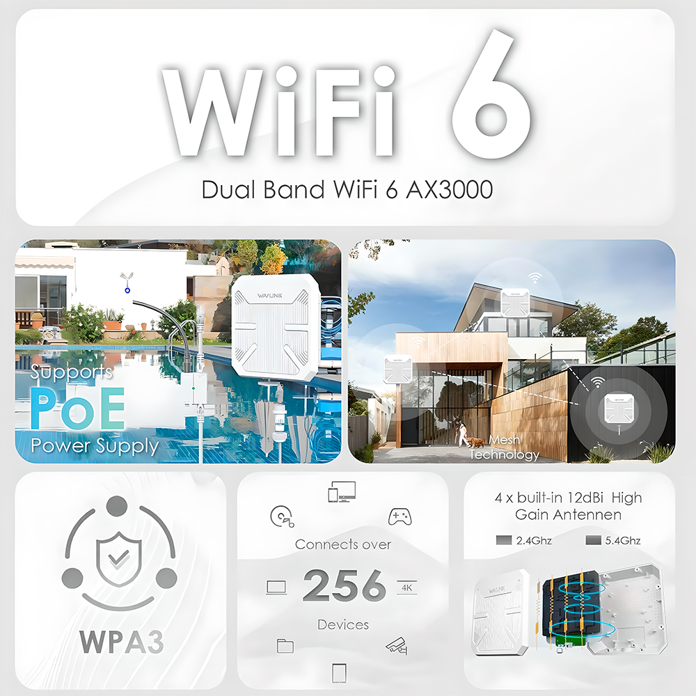 Wavlink AX3000 Extensor WiFi 6 Externo Repetidor PoE IP67