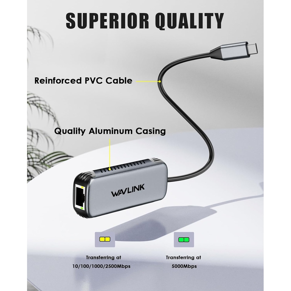 Wavlink Adaptador de Rede USB C para Rj45 Ethernet 5Gbps