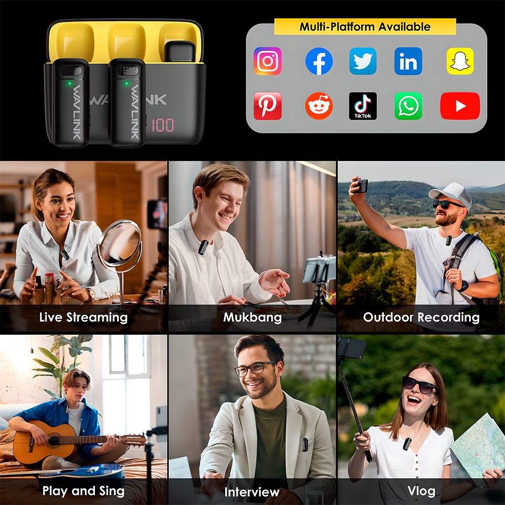 Microfone Sem Fio Wavlink Lapela Celular Vlog iPhone Android
