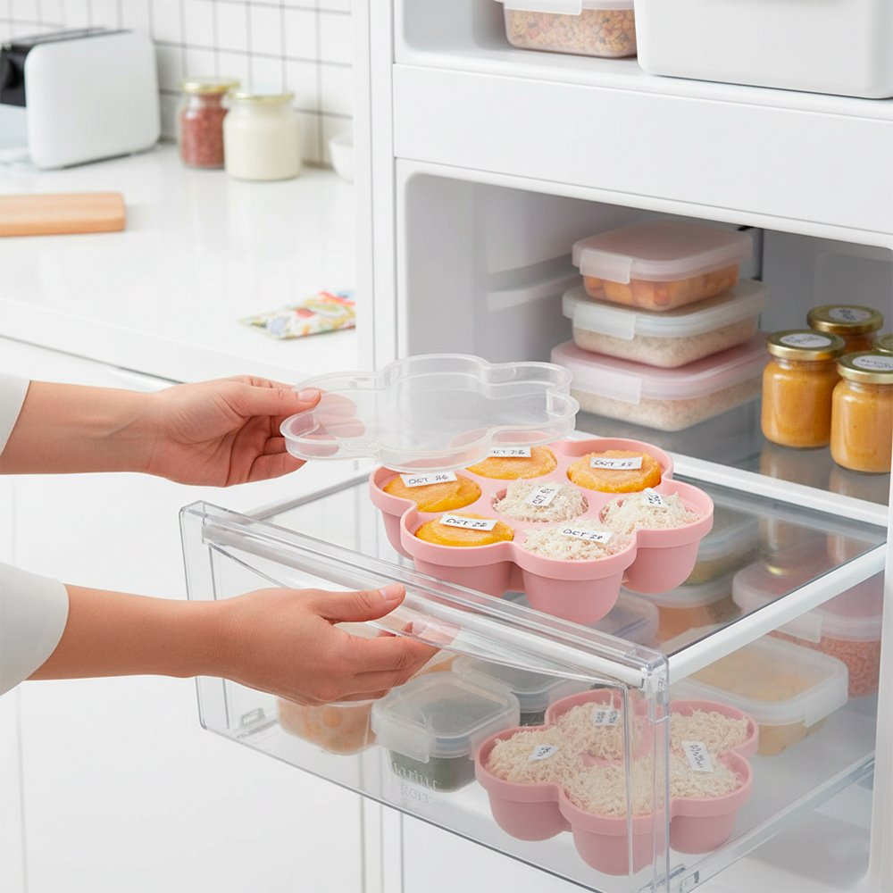 Kuhu Bandeja Organizadora Alimentos tampa Cubo Gelo Rosa