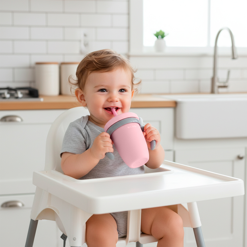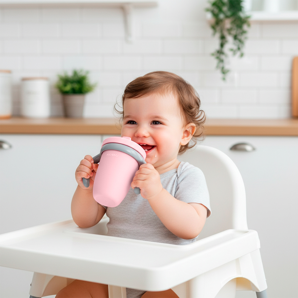 Copo de Transição Kuhu c/Canudo Antivazamento 240ml Rosa