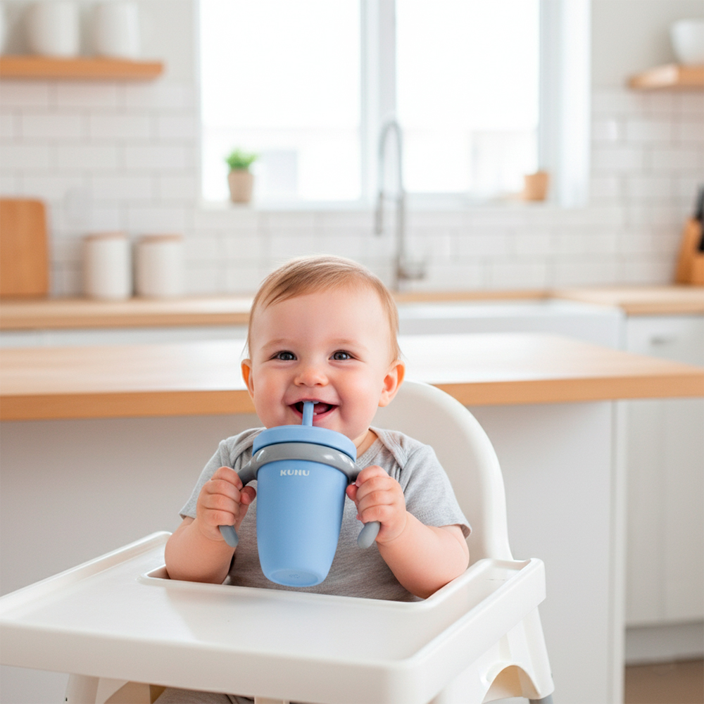 Copo De Treinamento Kuhu 240ml Bico Antivazamento Azul