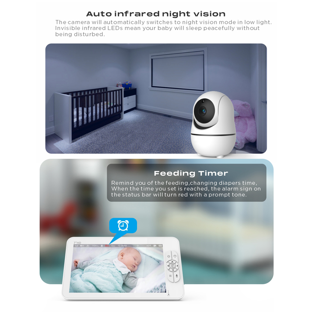 Babá Eletrônica Baby Monitor Tela 7 pol. e Câmera Branco