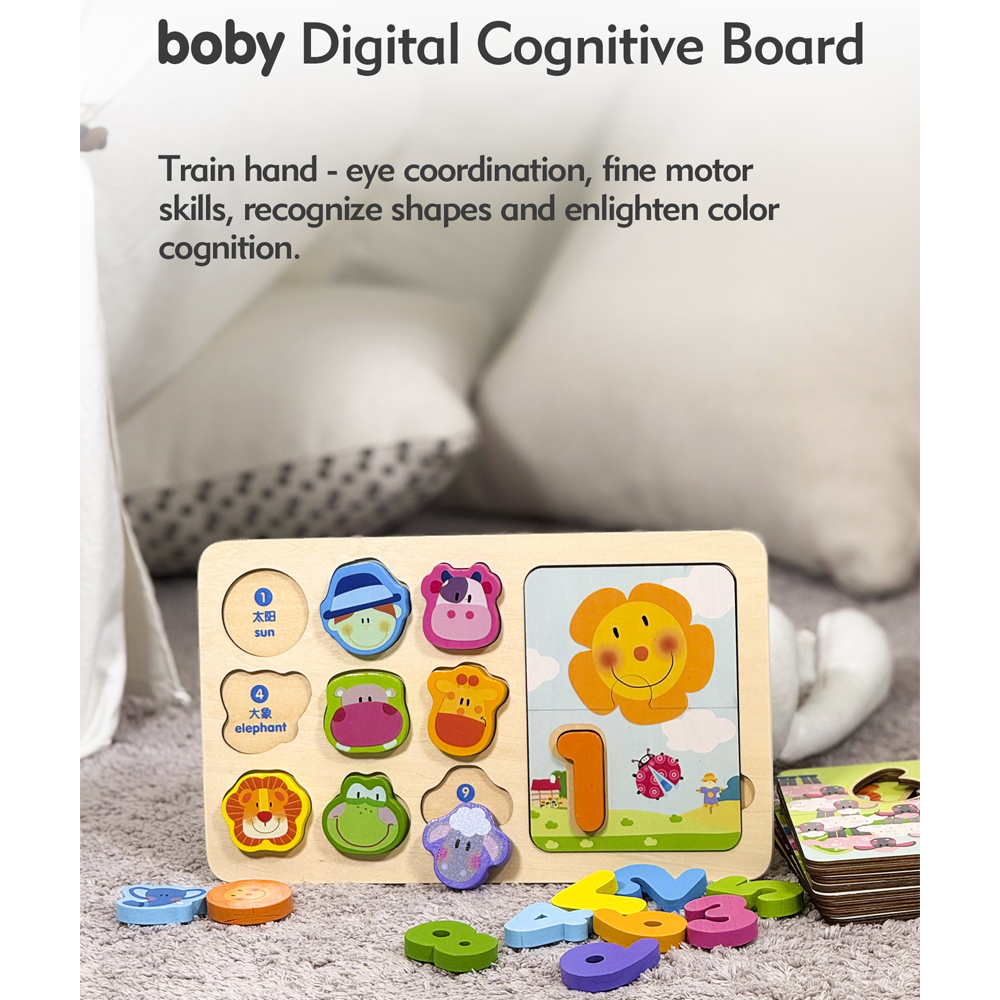 Quebra-cabeça Boby Madeira Encaixe Animais Contagem Números
