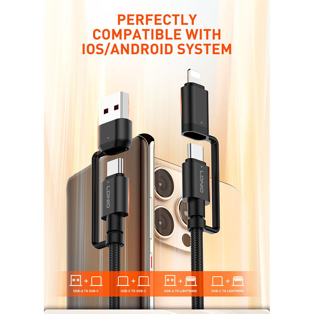 Cabo Ldnio 4 Em 1 Usb-C + Usb-A P/ Lightning Tipo C 1.2M
