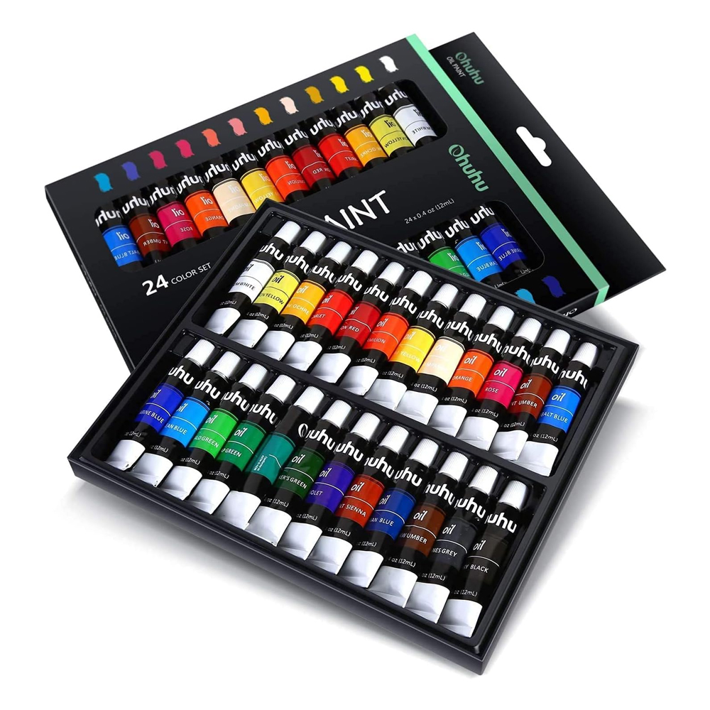 Conjunto Tinta Óleo Ohuhu 24 Cor 12ml Não Tóxica Pintura