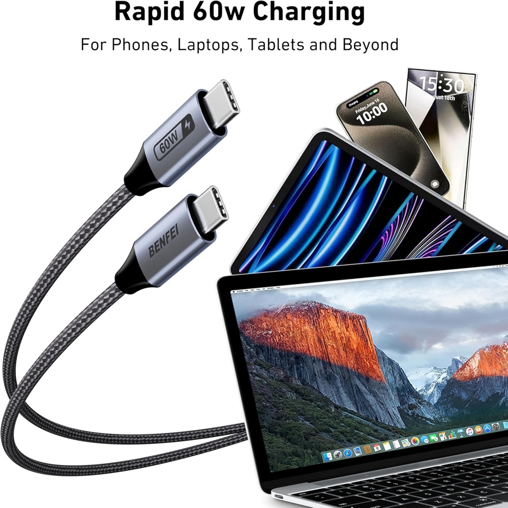 Cabo Usb-C 60W Benfei Carregamento Dados Trançado Nylon
