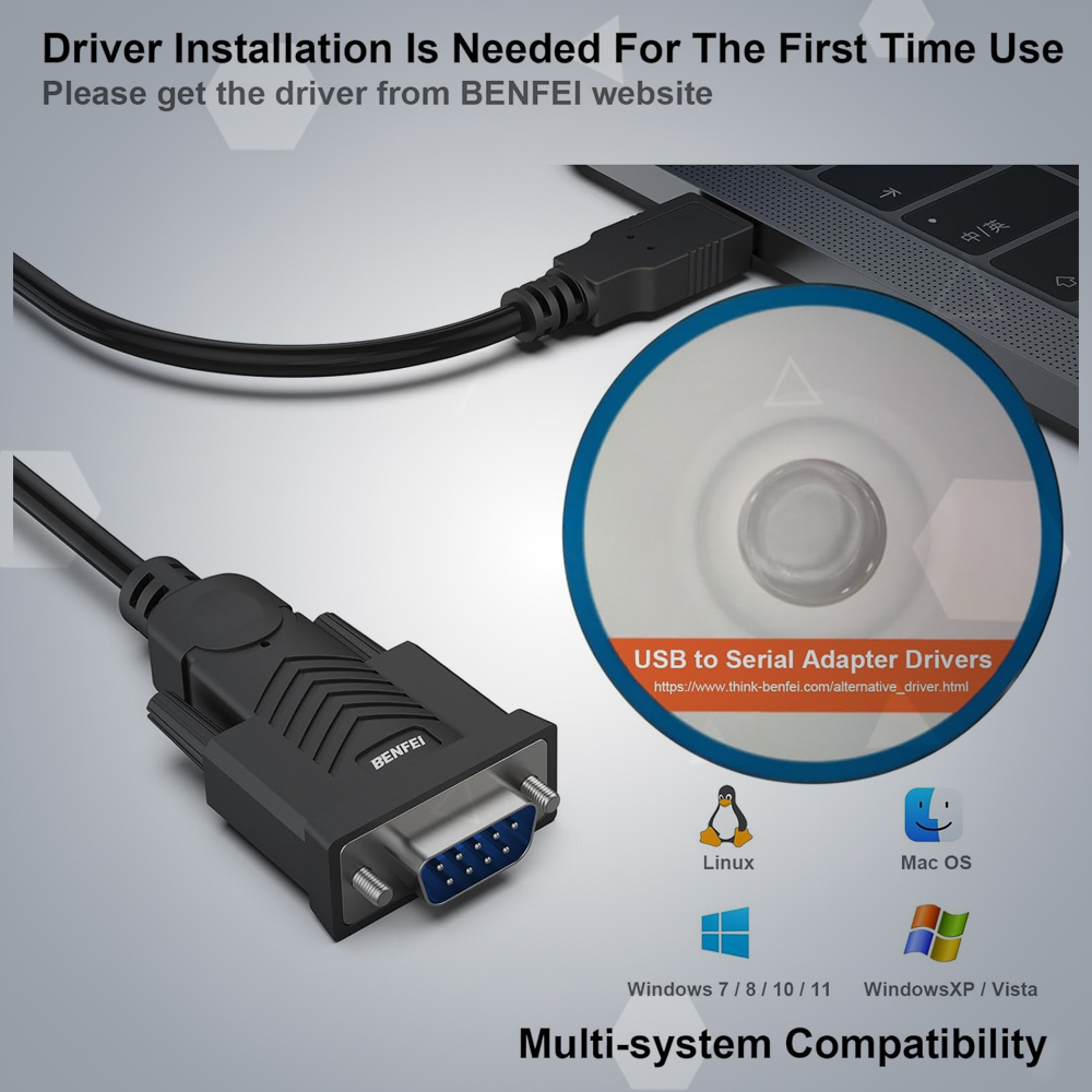 Benfei Adaptador Usb Para Serial Rs-232 Db9 9 Pinos Cabo