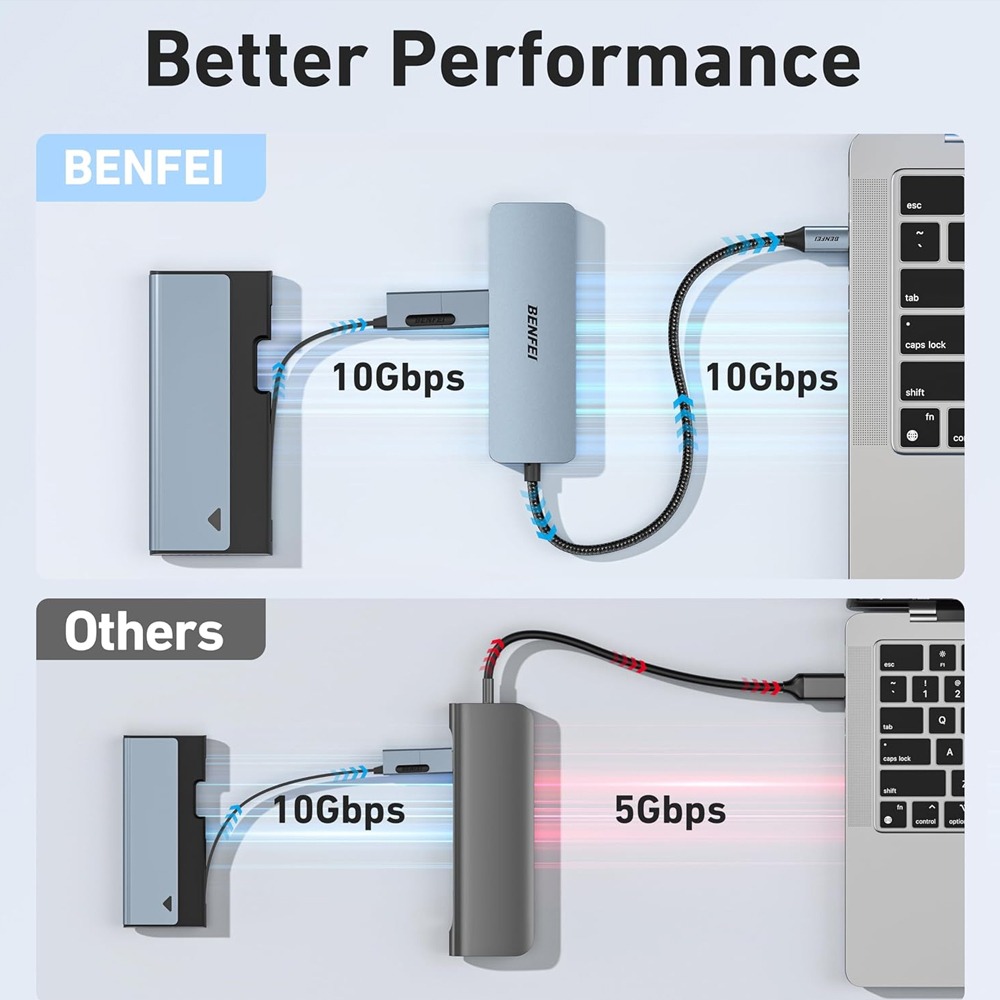 Benfei Hub Usb C 10Gbps 4 Portas Usb A/C 3.2 Gen 2 Cinza