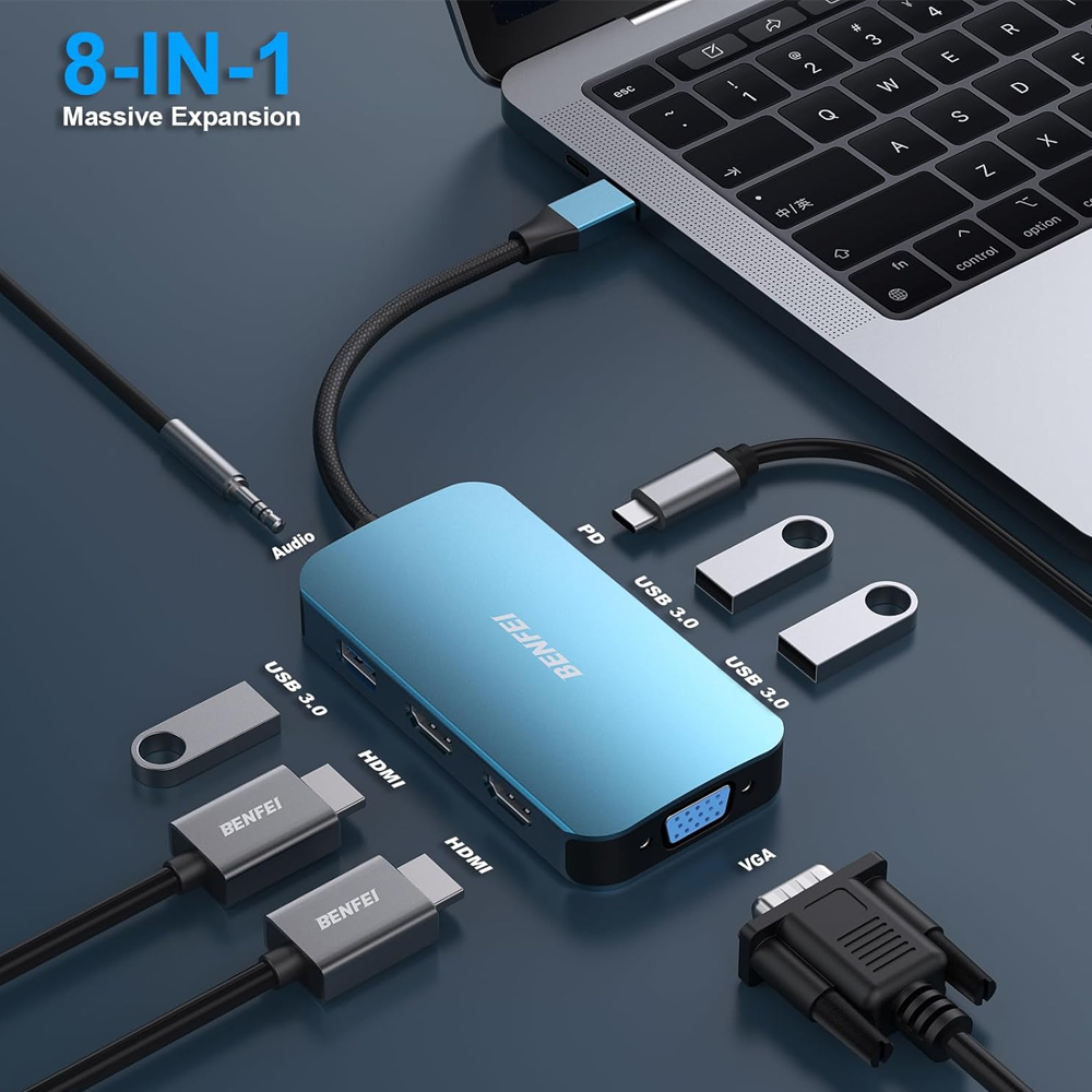 Hub USB C Benfei MST 8 em 1 Hdmi Vga Usb 3.0 100W PD Aux