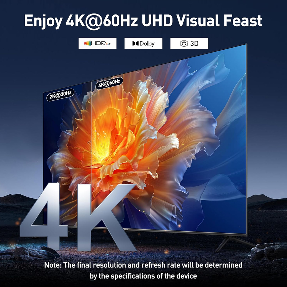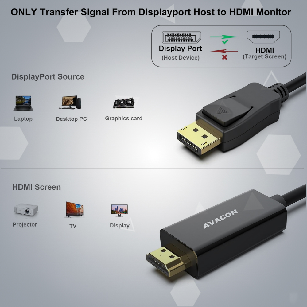 Benfei Cabo DisplayPort Para HDMI 4K 60Hz 1,8M Alumínio