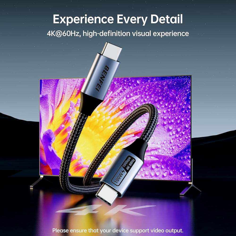 Cabo Monitor USB-C Benfei 4K60/120Hz 100W PD 10Gbps 1M